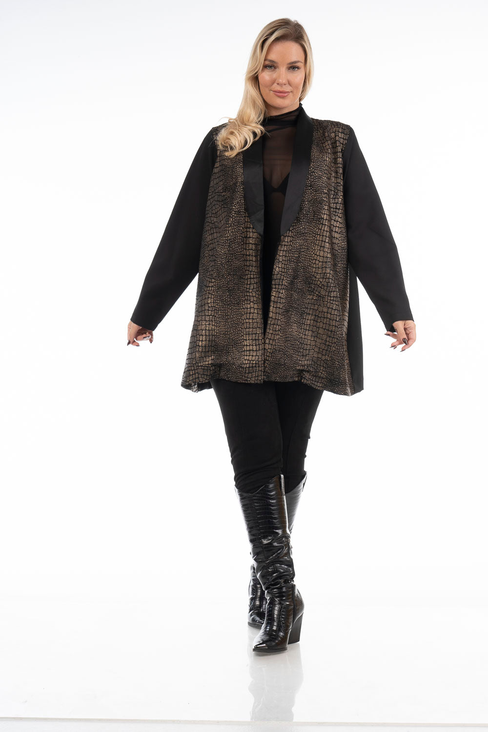 Σακκάκι oversize άνισο, Bronze Snake Print ύφασμα μπροστά και two way ύφασμα σε πλάτη και μανίκια
